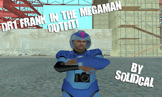 Hey again guys!I have something special for you today.Yep DR1 Frank in the Megaman outfit!So theres a few bits of bugs on this model that I can not fix because of how GTA SA's bones are set up.So his knees come through the megaman boots so thats something I can't fix.Also the visor on the helmet is there but because of how SA handles the alpha and see through models it has made the whole visor see through.But it is still there.So you may see a black line appear near the helemet.That is the visor you will see.Well the line of it.But besides those bugs the model works pretty okay and is stable enough to be released.So enjoy and pist feeback and what not! :)